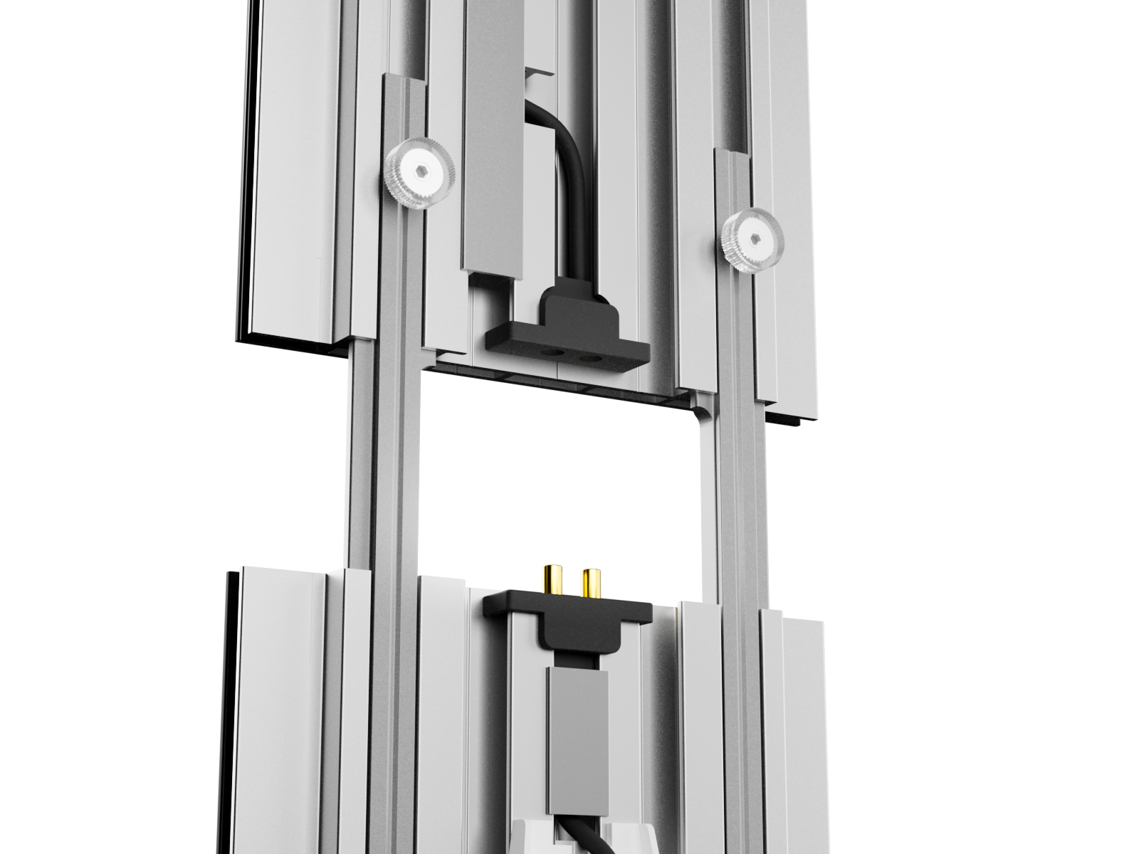A revised cable management system within the frame ensures a clean appearance without visible cables. Recessed pogo-pin contacts further enhance safety and reliably protect the connection points.