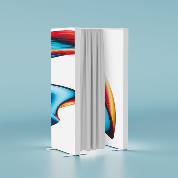 The wide range of available widths (88, 100, 130, 140, 150 cm) and heights (200, 230, 248, 298 cm) offers maximum flexibility for a wide variety of presentation spaces.