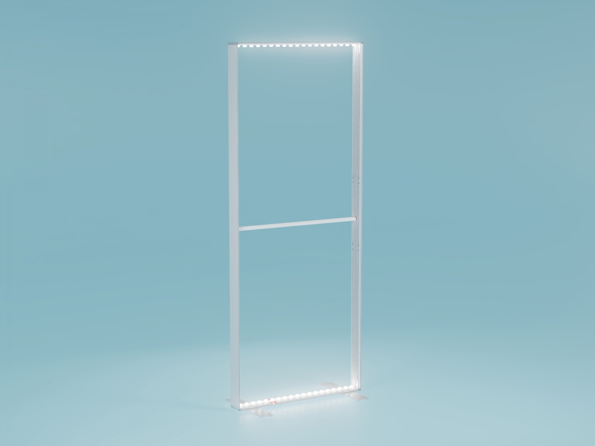 High-quality aluminum profiles and modern lens technology create a bright, evenly illuminated surface – completely free of shadows. The globally patented LEDUP® connection system enables fast, tool-free assembly, allowing the stele to be ready for use within minutes, even without prior experience.