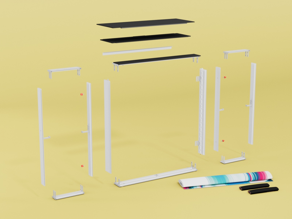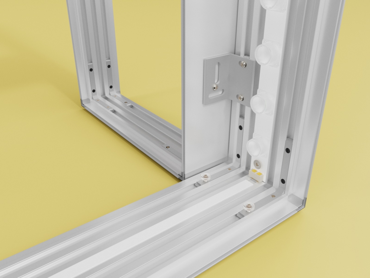 These frames will be delivered in parts in an ABS transport case. This saves transport costs and packing material. Assemble the frame, connect driver and cables – plug it in and finished.