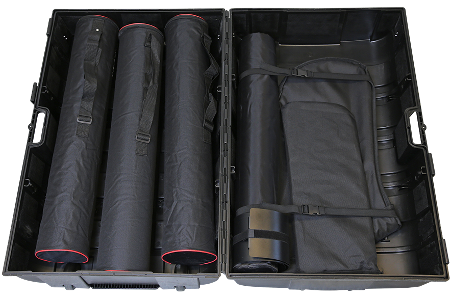 The expo-case counter / transport case is easy to set up. Just open it and add the table top and the shelves. Attach the graphic panel with brush nylon / velcro and the counter is ready to use.
