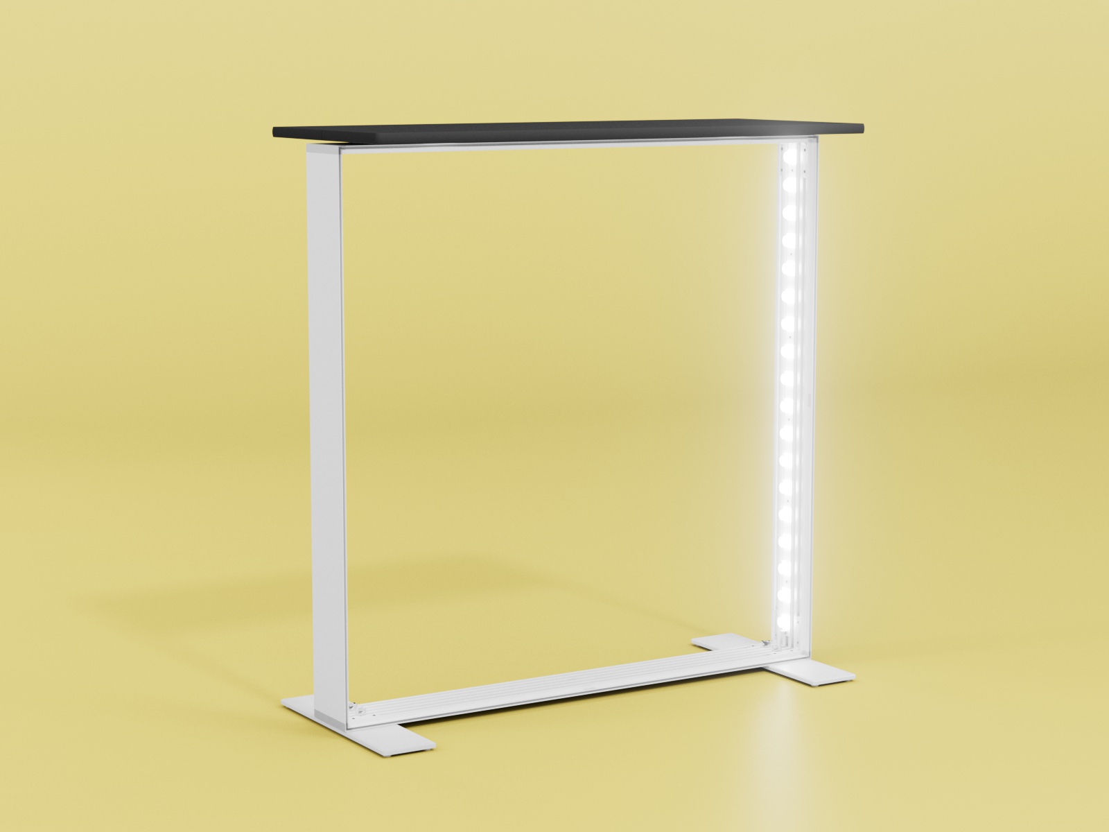 Multi frame – LEDUP counter is a mobile counter system with double backlit image areas. High-end aluminum components in combination with perfect LED-technique guarantees the absolute even lighting and brightness without any shadows. It is also very easy to transport thanks to the durable ABS transport case.