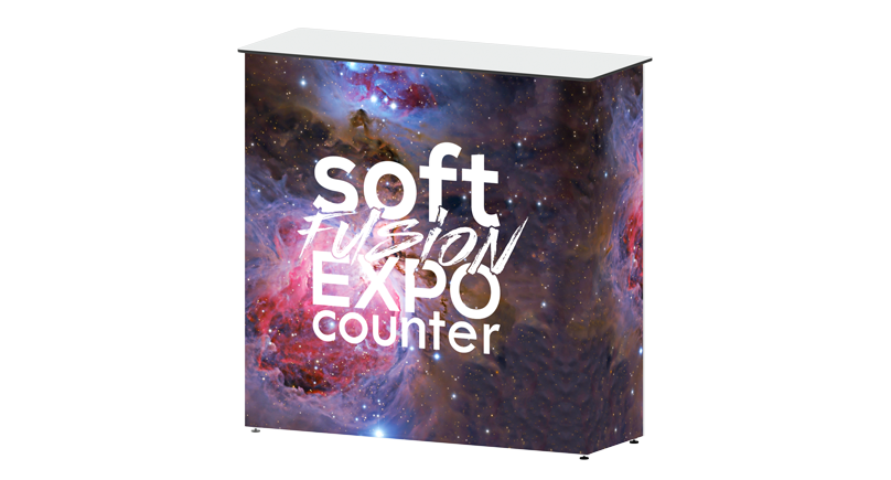 The soft expo fusion_counter is a quick and easy way to add a counter to your backdrop. Using it in  your showroom or booth looks great. It is the perfect portable counter solution for exhibitions, showroom applications, presentations, promotions and events.