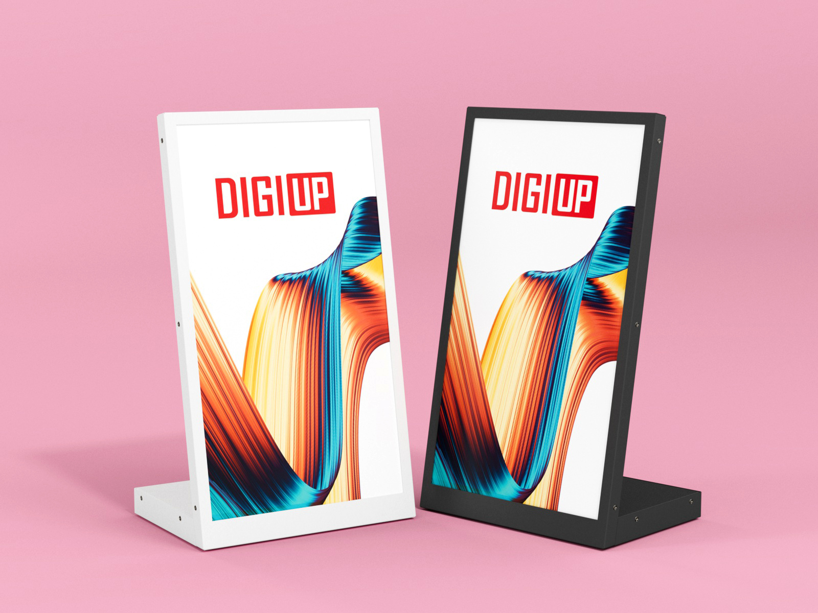 The DIGIUP Desk can be used in various ways, such as for advertising in shop windows to directly attract potential customers and promote new products. It is ideal as a digital menu in restaurants to display daily specials or promotions. The DIGIUP Desk can be used at trade shows and events to effectively convey information about products, services, or the company. In reception areas of hotels or offices, it serves as a greeting and information tool for customers or guests. It is also useful in retail, where it can highlight special offers or new products, thereby increasing sales. Thanks to the simple content updates via Wi-Fi, LAN, or an optional 4G module, the DIGIUP Desk is flexible and ready for immediate use.