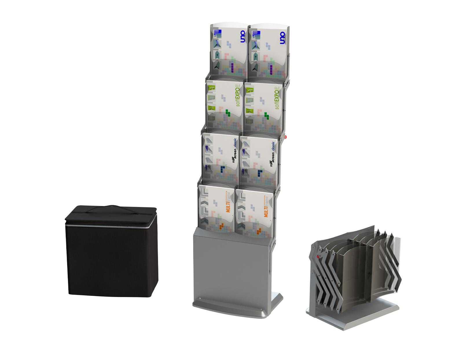 A brochure rack for many promotional activities - show rooms, shops, promotions, fairs, exhibitions, events etc.