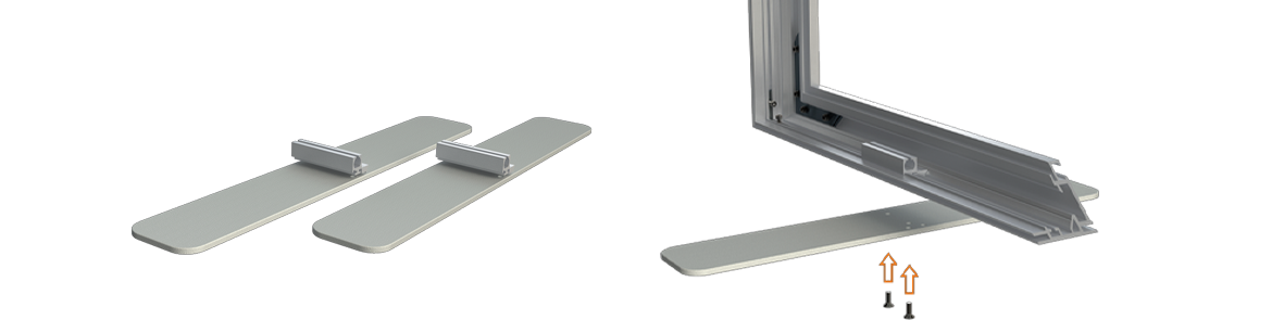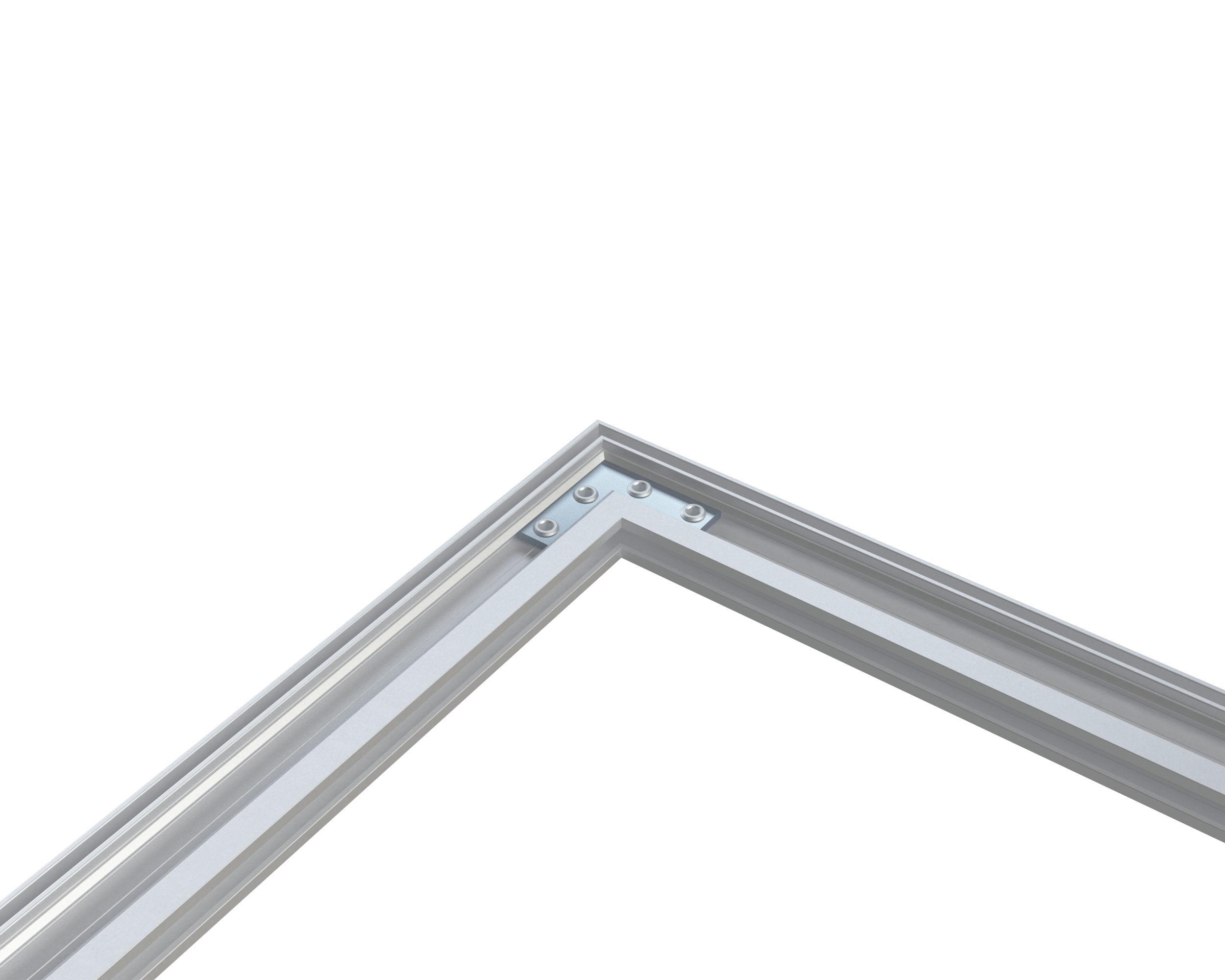 All frame profiles are connected with 90° corner connectors. For easier transportation profiles can be cut to smaller sizes and when set up again connected with straight connectors.