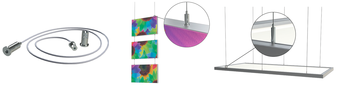 Multi frame profiles can be used as wall mounted displays, single or double sided ceiling suspended frames, room dividers, backdrops, and many other display solutions.