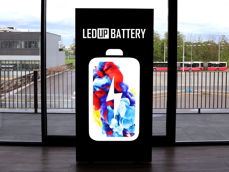 LEDUP® Battery can be used as single or double-sided floor display if a power outlet is not available, room divider, backdrop, for shops and product promotions, and many other display solutions.