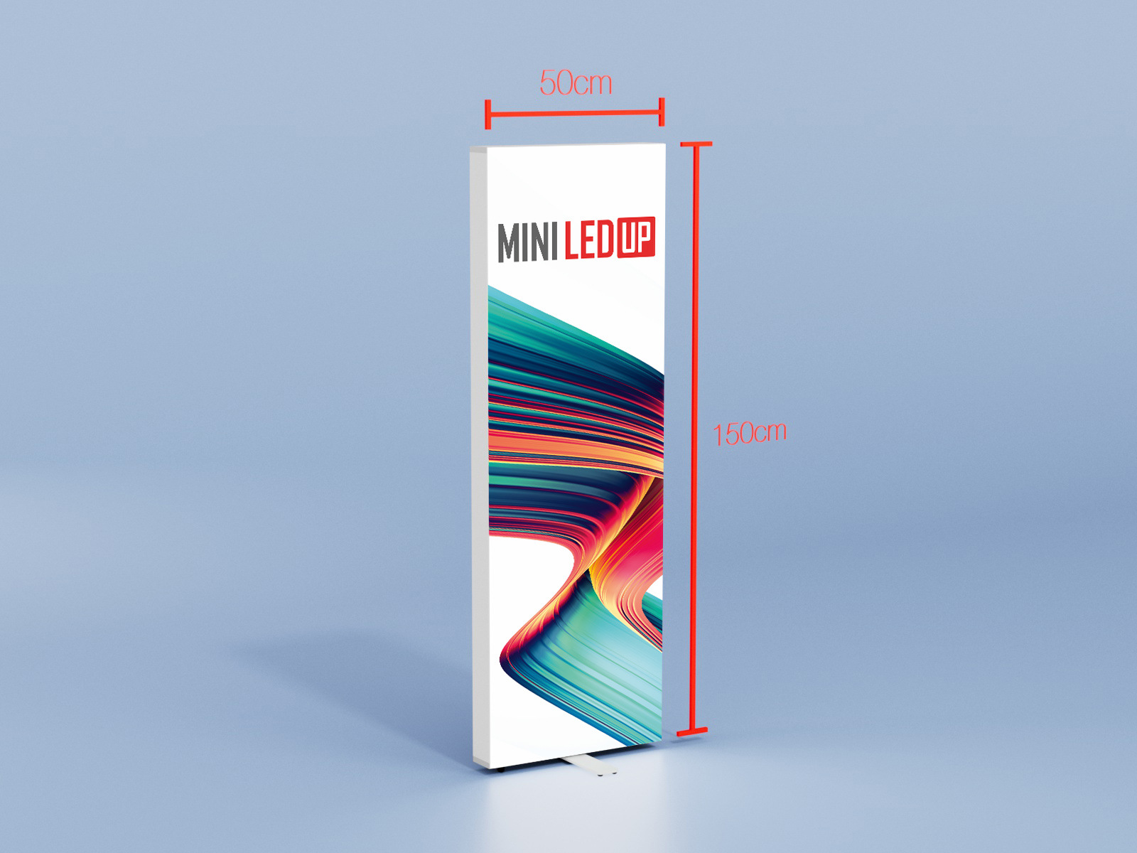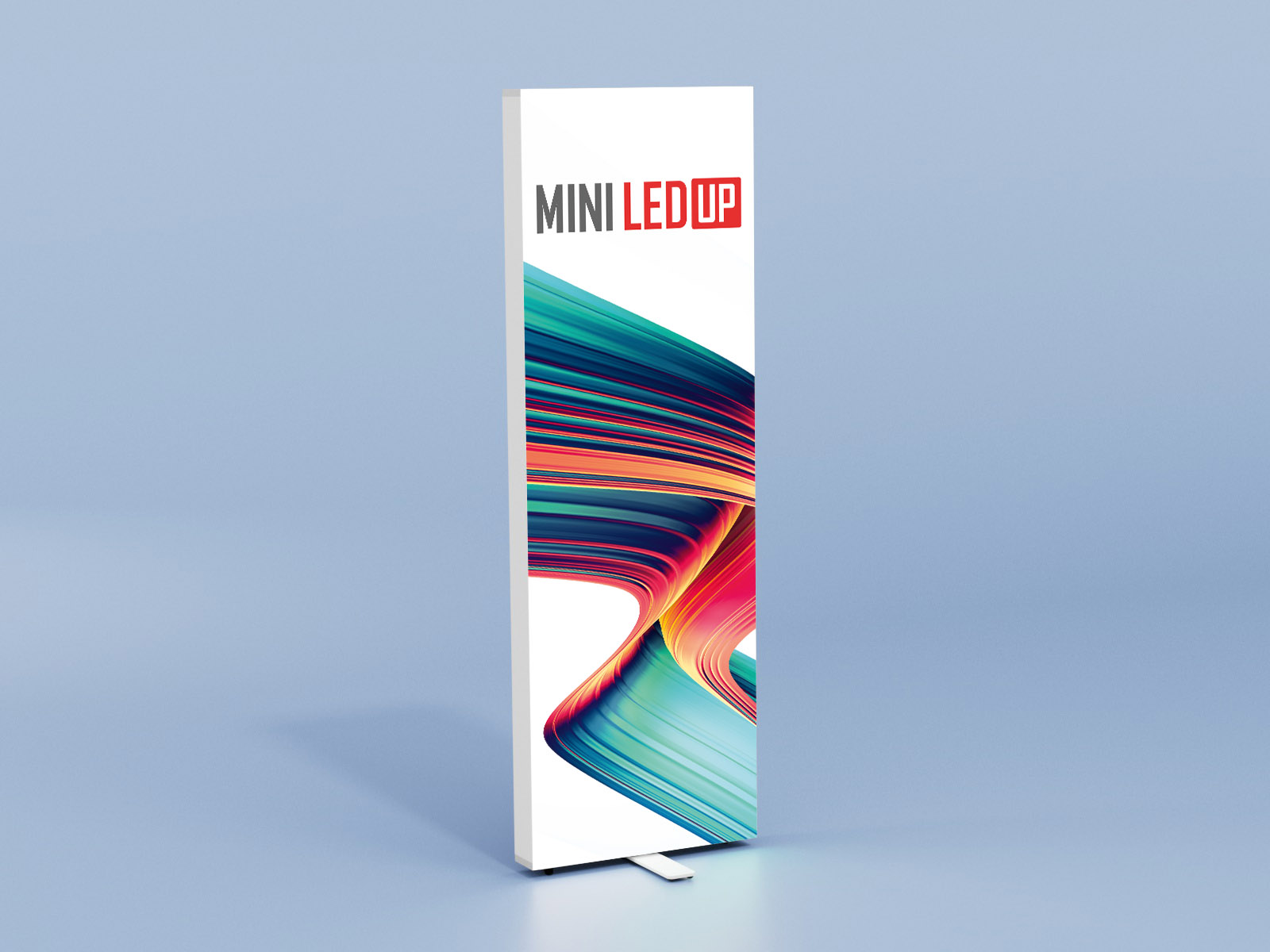 A high level of brightness with even illumination, silver anodized aluminum profiles with a depth of only 80 mm and the simple, tool-free assembly thanks to the innovative plug-in system make the Mini LEDUP® a champion among illuminated displays.