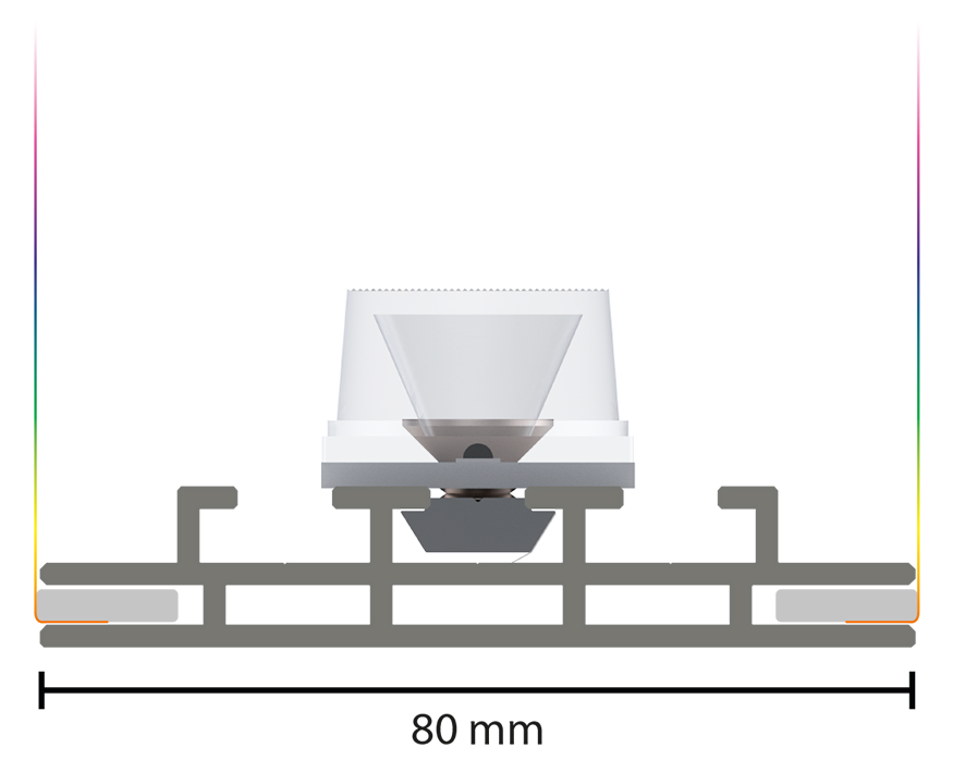 One profile – profile dimension (depth) 80 mm / 3.2” is used for this display frame. LEDUP® is made of high quality anodized aluminum and are UV resistent. The design and shape are very slim and timelessly elegant.