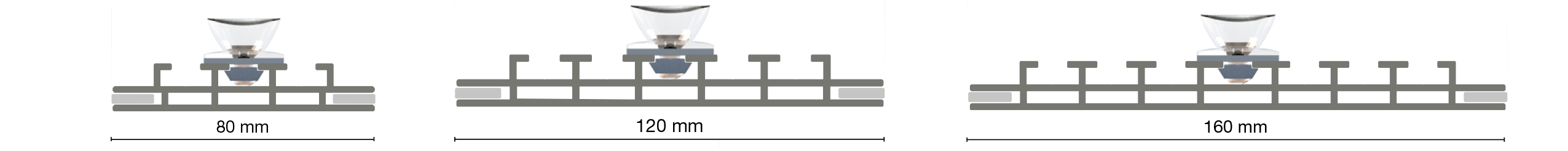 Three different profile dimensions (depth) are used to build different frame sizes  – 80, 120 and 160 mm / 3.2”, 4.7” and 6.3” are available.