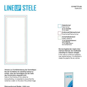 LINEUP Stele is available in various standard sizes, with a width of 100 cm and heights ranging from 200 - 300 cm. Thanks to its modular system, multiple LINE UP frames can be flexibly combined in different sizes and configurations - creating setups precisely tailored to your specific requirements.