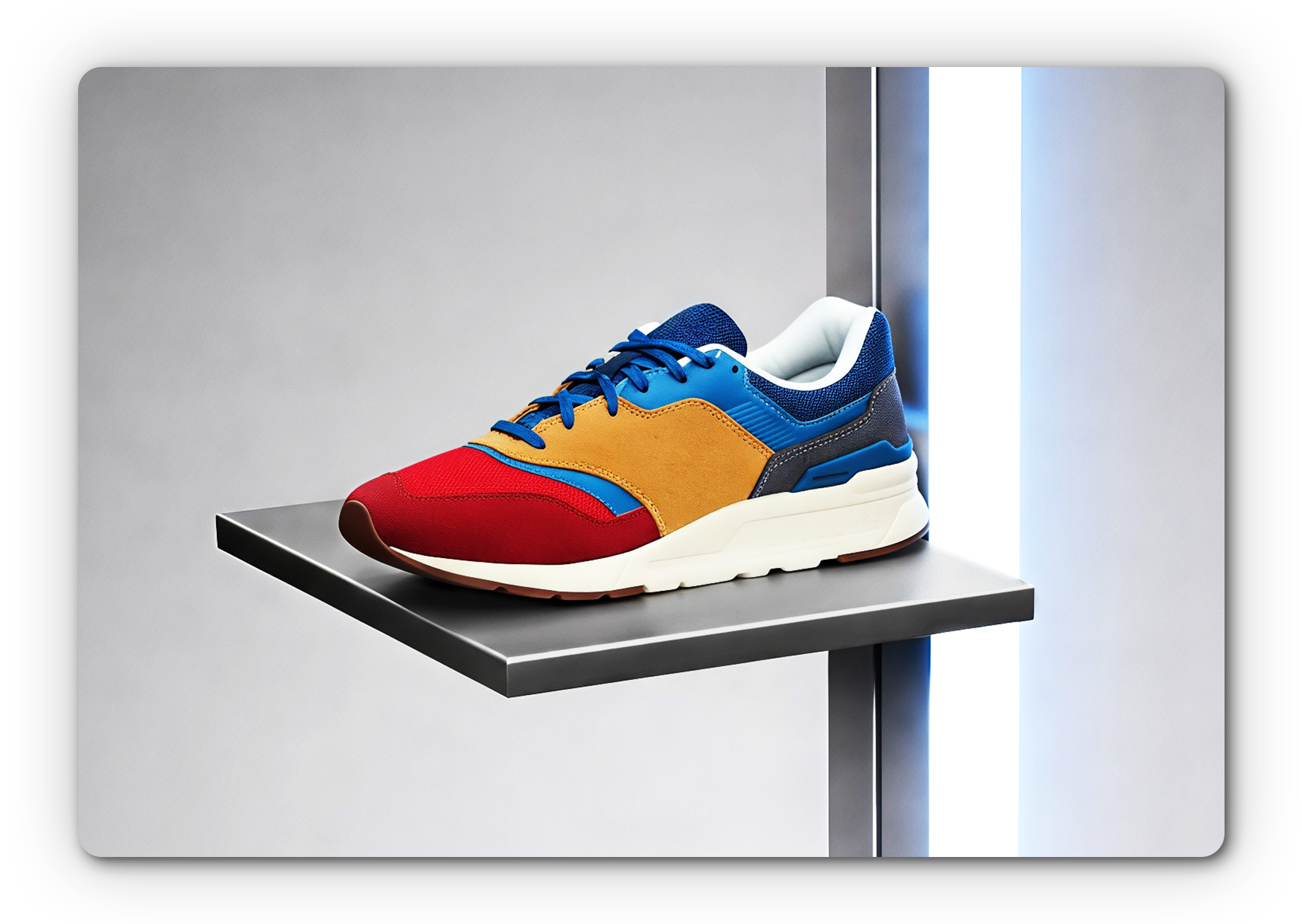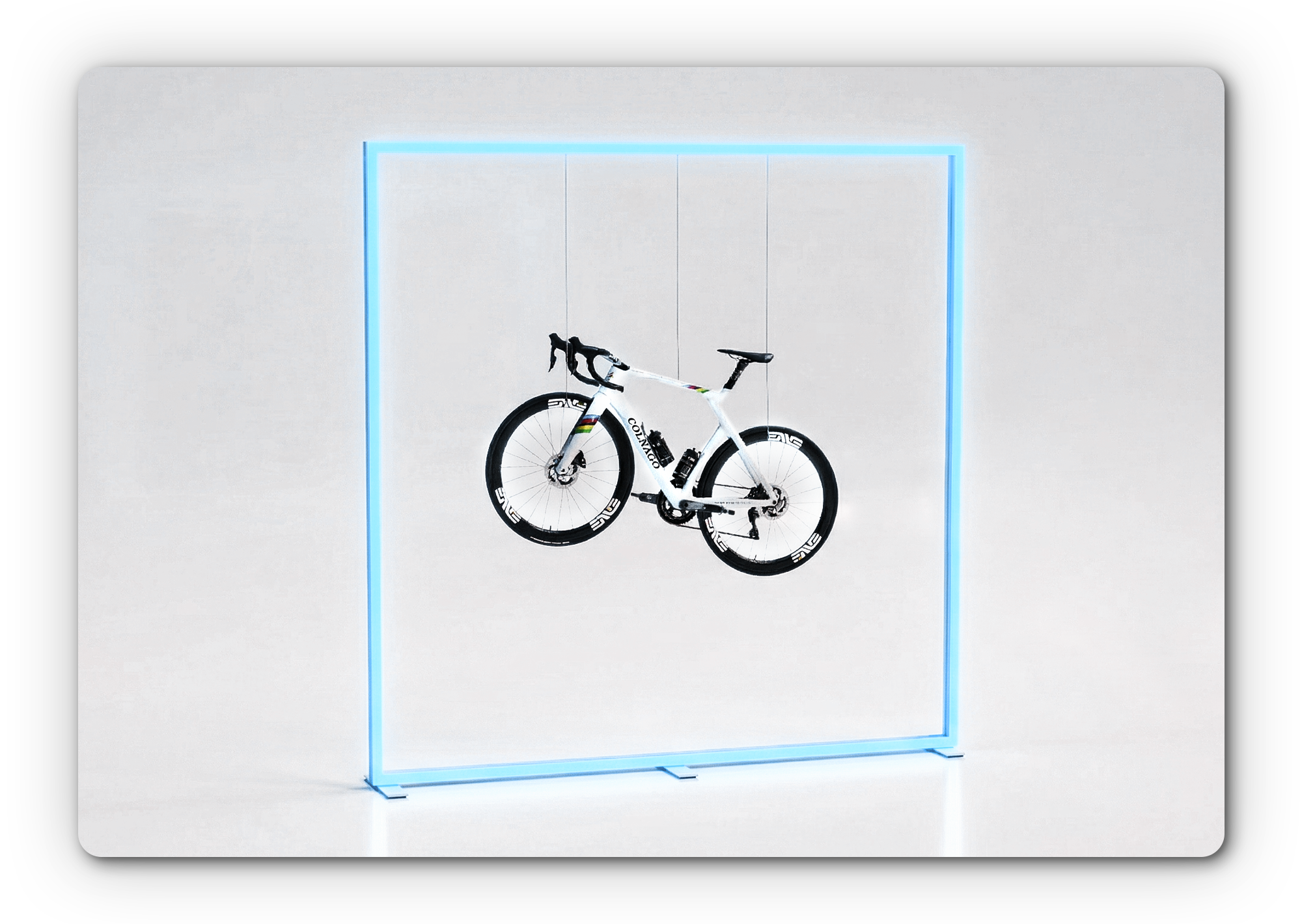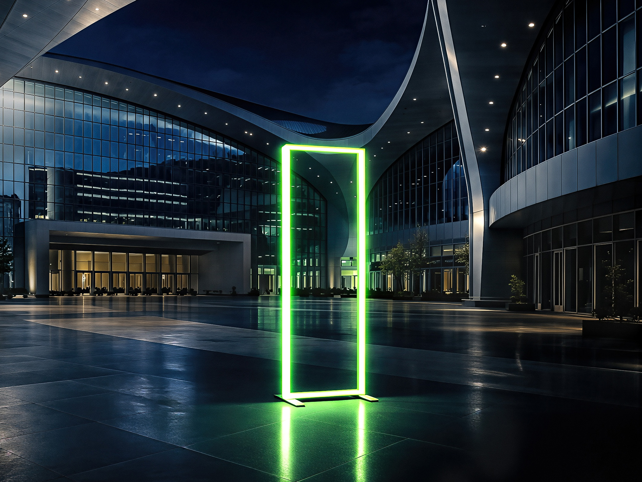 Crafted from aluminum profiles and equipped with RGB-LED light strips capable of displaying up to 16 million colors, it creates a visual presence tailored precisely to your presentation.