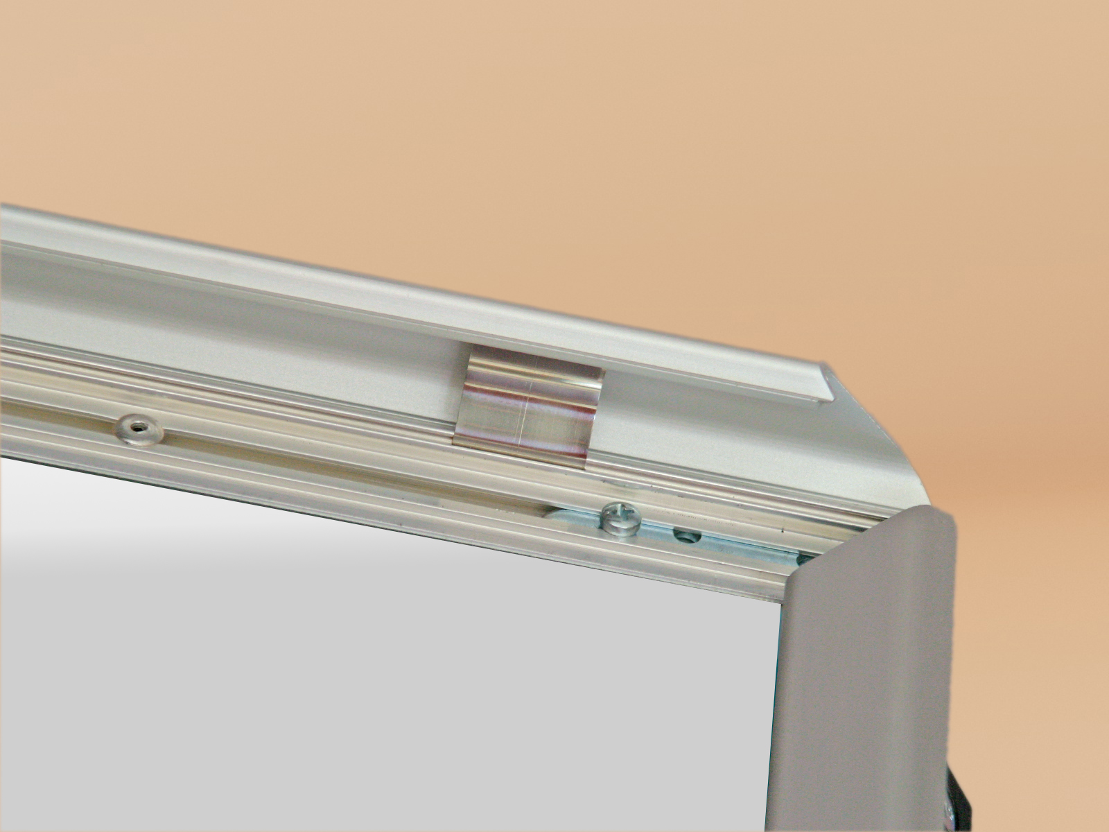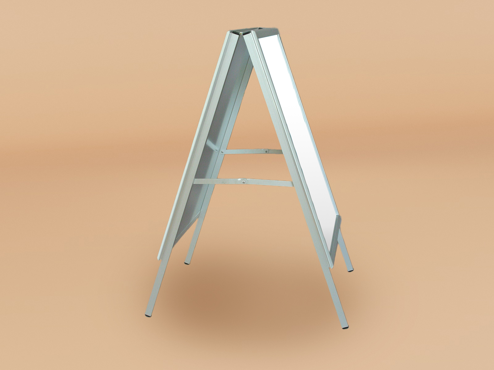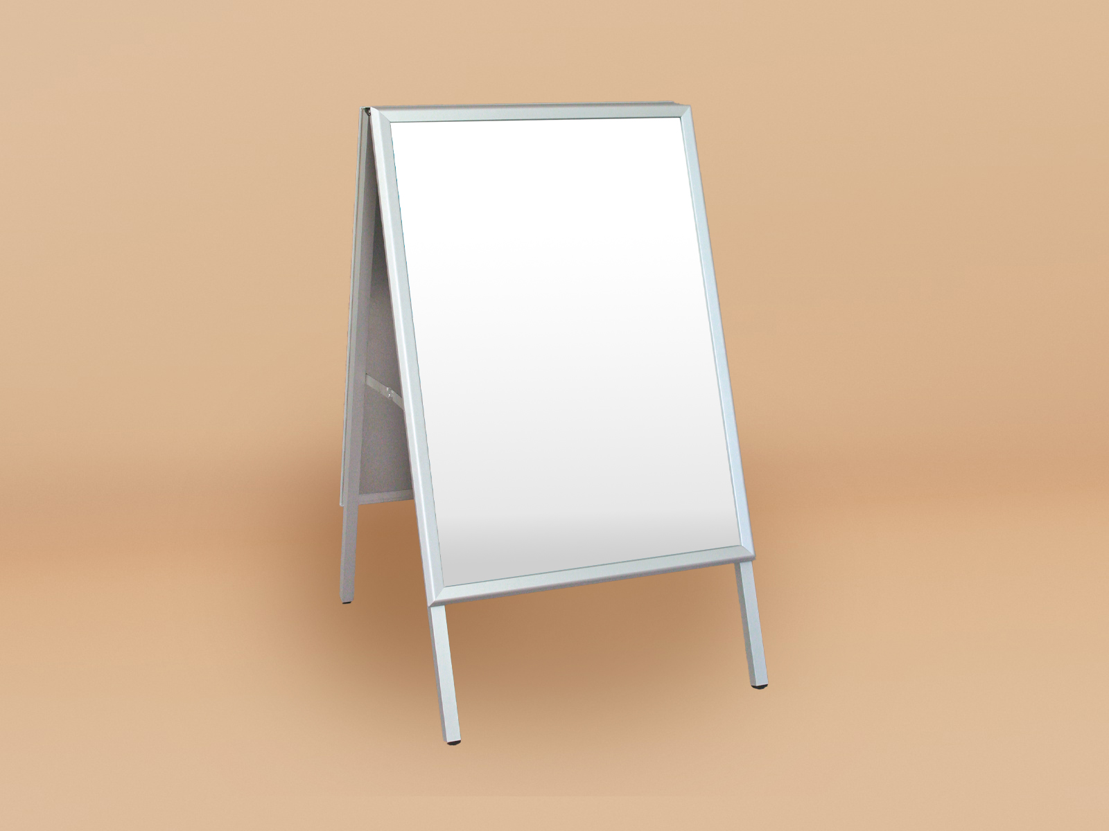 A-stand is made of aluminum and includes snap-frames for a quick and easy change of panels. Included are anti-reflex protective sheets to protect the poster from sunlight.