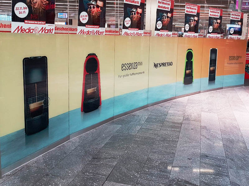 Whether it's a display window, floor, walls or your car, all surfaces can be covered. Made from different materials - digital printing films, plotting films but also paper or cardboard - they use these advertising spaces.