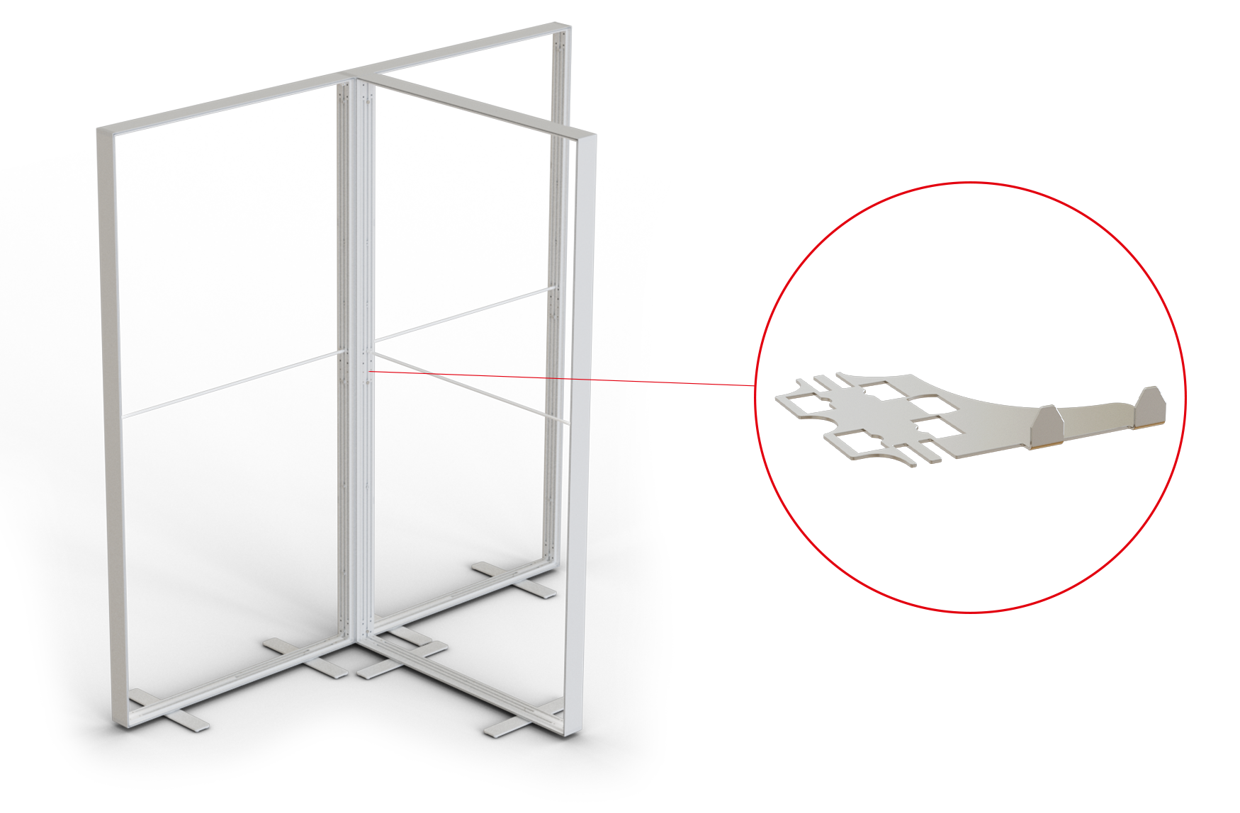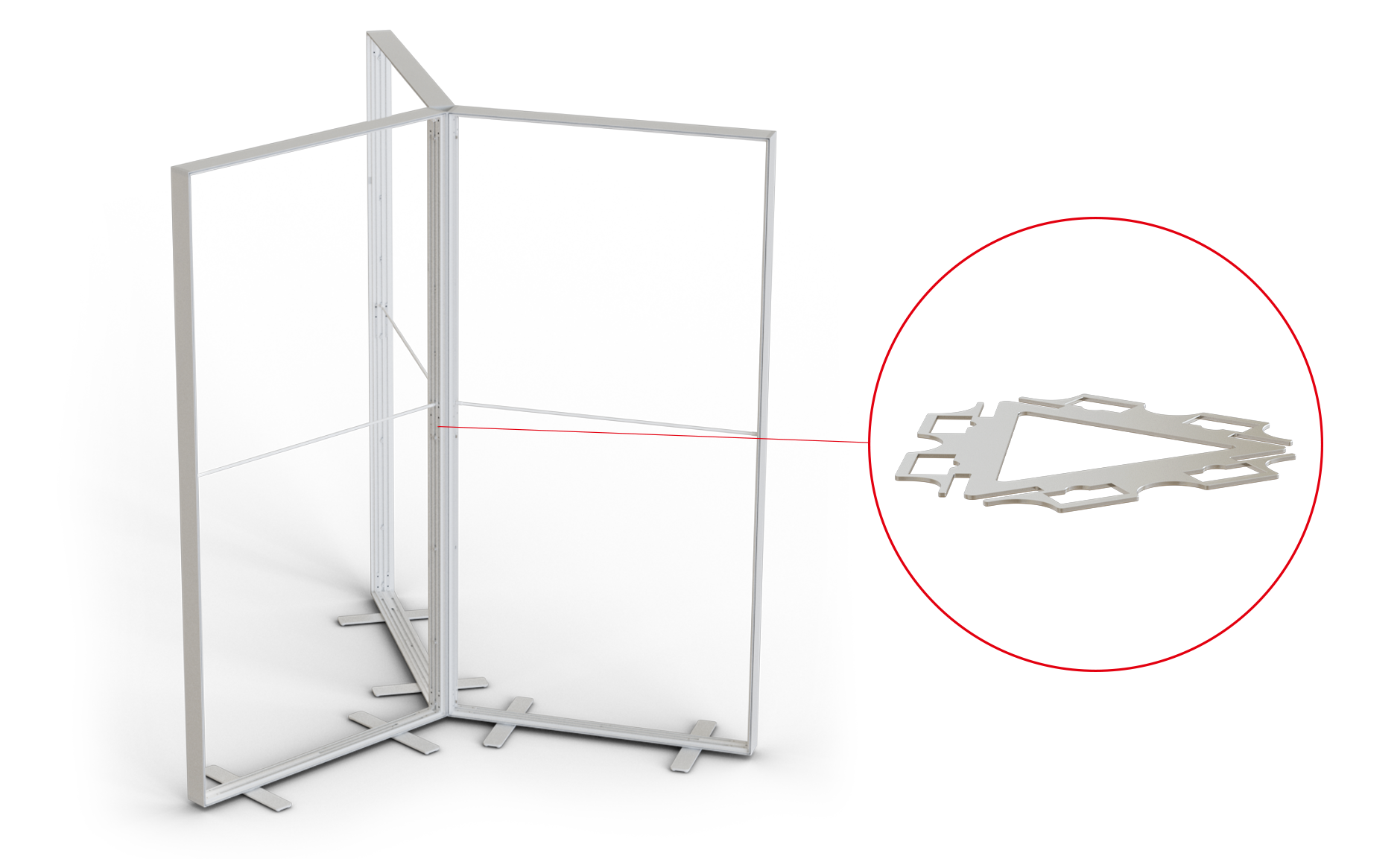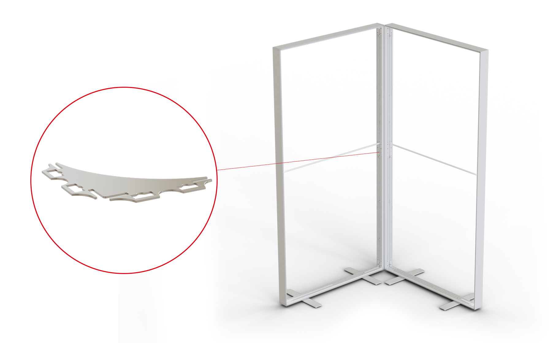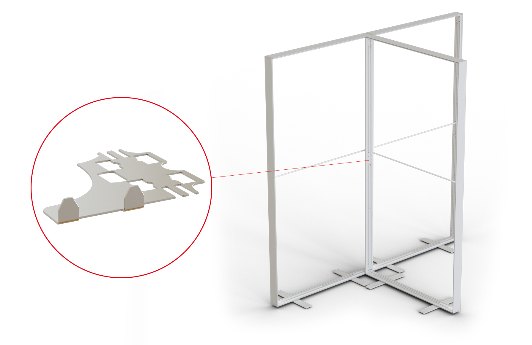 With different metal system connectors inserted between the vertical systemcomponents, you can easily connect back panels in a variety of shapes. These accessories also alow you to create various shapes of back panels like L-, U-, T- , cross or star shape.