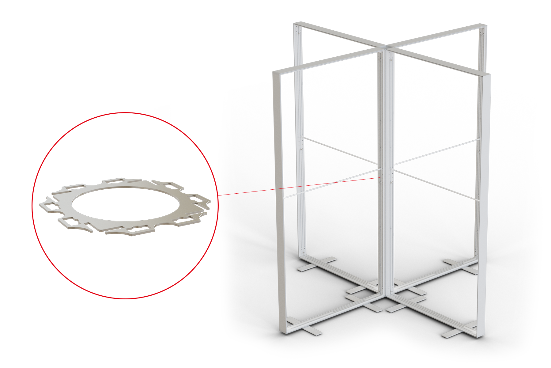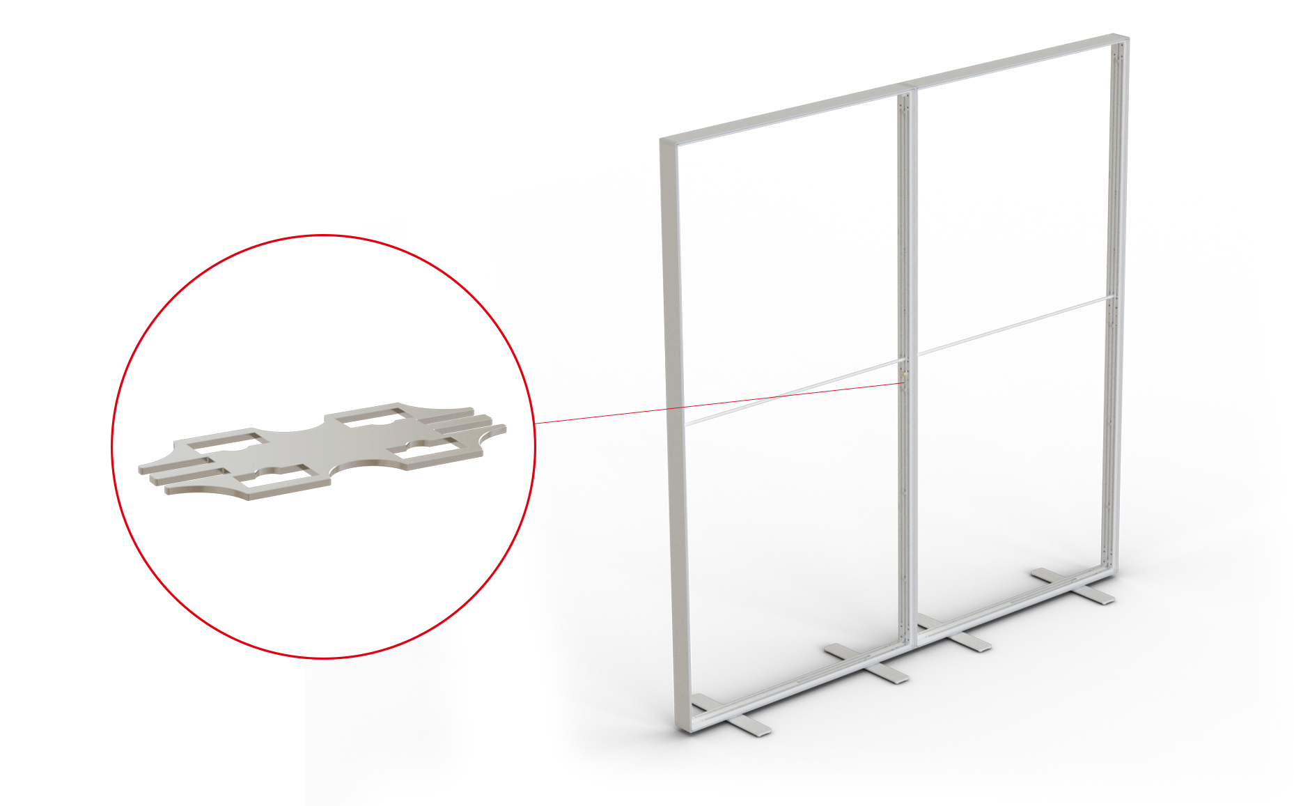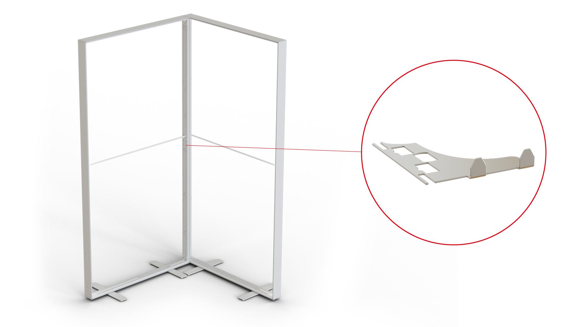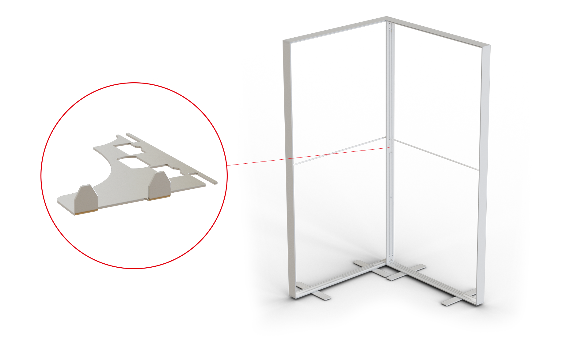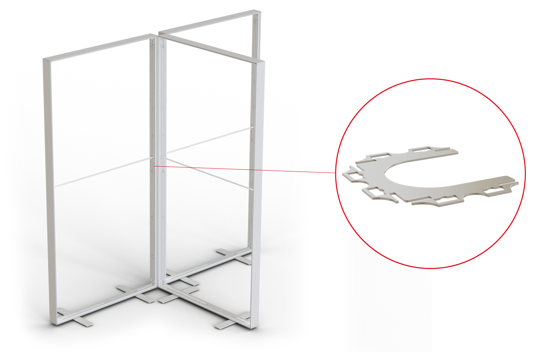 With different metal system connectors inserted between the vertical systemcomponents, you can easily connect back panels in a variety of shapes. These accessories also alow you to create various shapes of back panels like L-, U-, T- , cross or star shape.