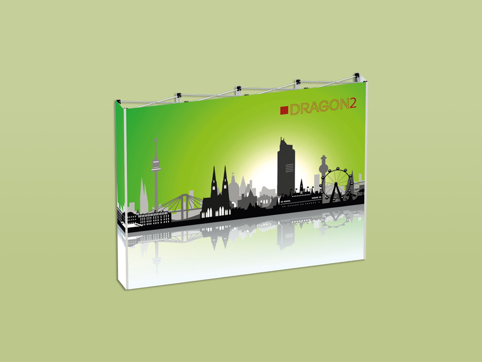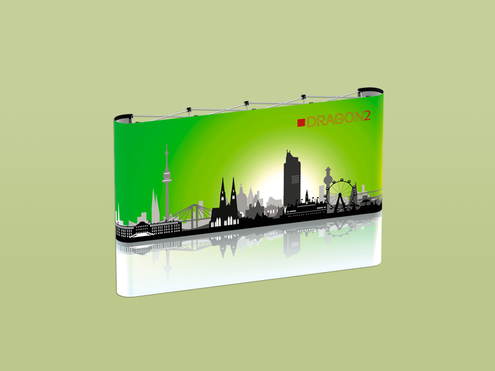The dragon2 straight pop up is a quick and easy way to make your showroom or booth look great. With the addition of a display monitor, you can really make your back wall stand out! It is the perfect pop up solution for exhibitions, showroom applications, presentations, promotions and events.