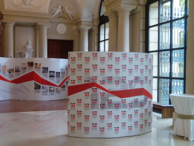 LED spotlights are available as accessories. They are easy to attach to the backdrop and brighten up your presentation.