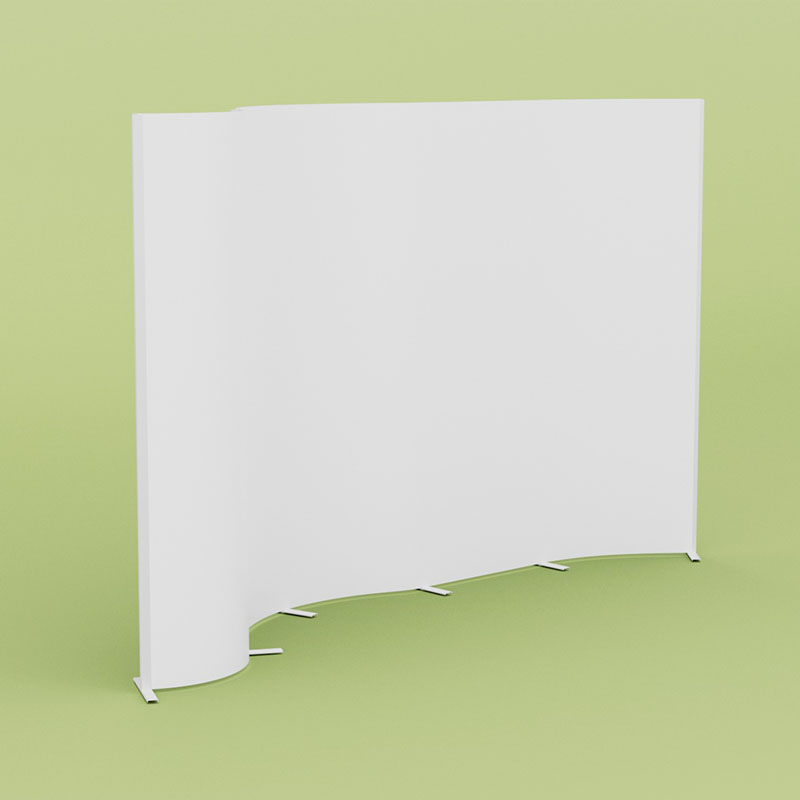 The ISOframe Wave system is a flexible, deformable exhibition system with magnetic panels.