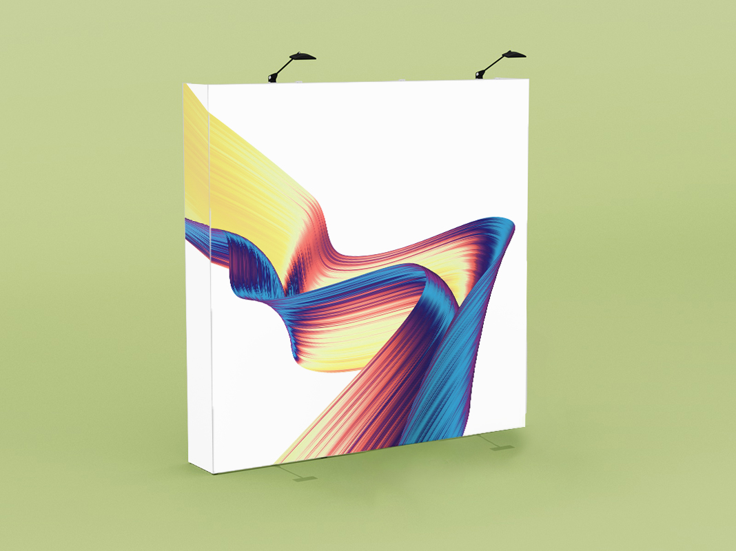 The soft expo fusion_counter is a folding system for fabric tensioning with silicon lips. With most fabric tension systems the fabric print is already attached to the system