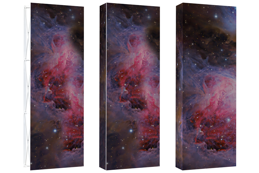 Width and height of the system is defined in quads 1 x 3, 2 x 3, 3 x 3, 4 x 3 und 5 x 3. System height 226 cm / 89” (= 3 quads) – system widths vary from 77,3, 150,7, 224, 297,3 and 370,7 cm / 30,5”, 59.4”, 88.2”, 117” and 146” – custom sizes are available upon request.