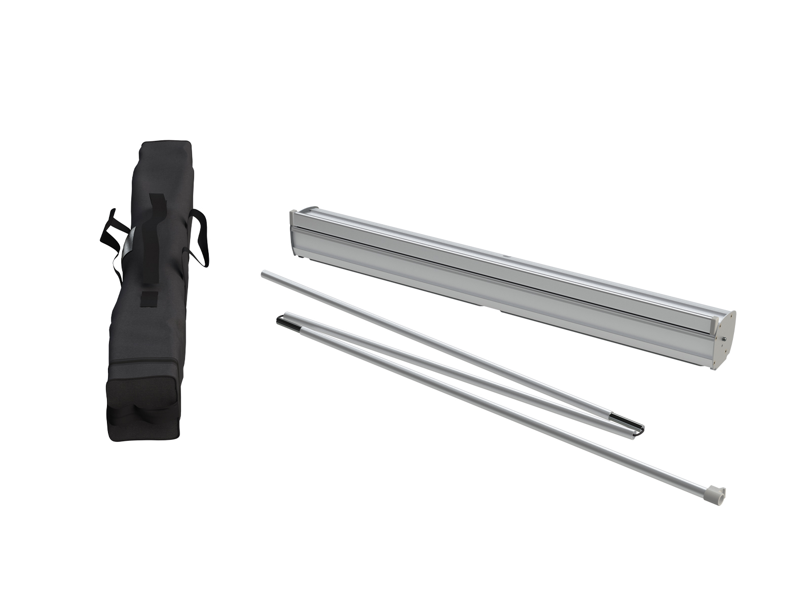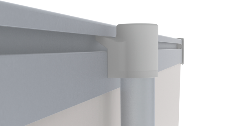 Pull the panel out of the cassette – fix it to the pole – insert the pole – finished. End caps for top profile included.
