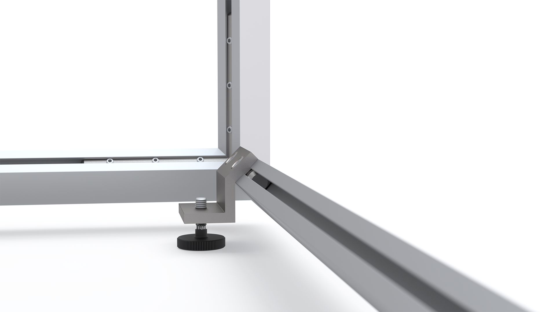 Joints on the straight profiles are reinforced with an aluminium cross that can also be adapted as a lamp fitting for LED lamps. This technique allows for an even illumination without any shadows.