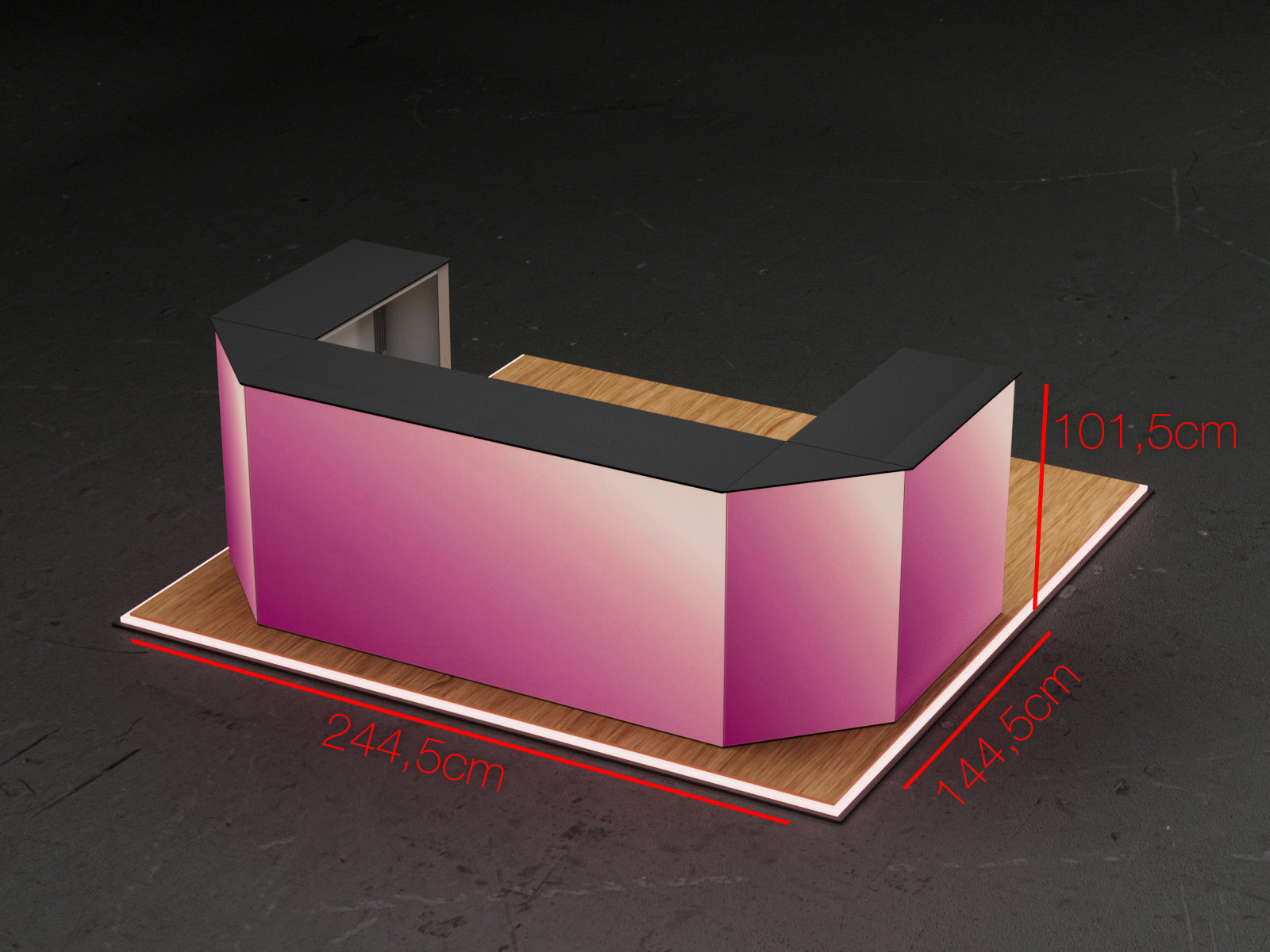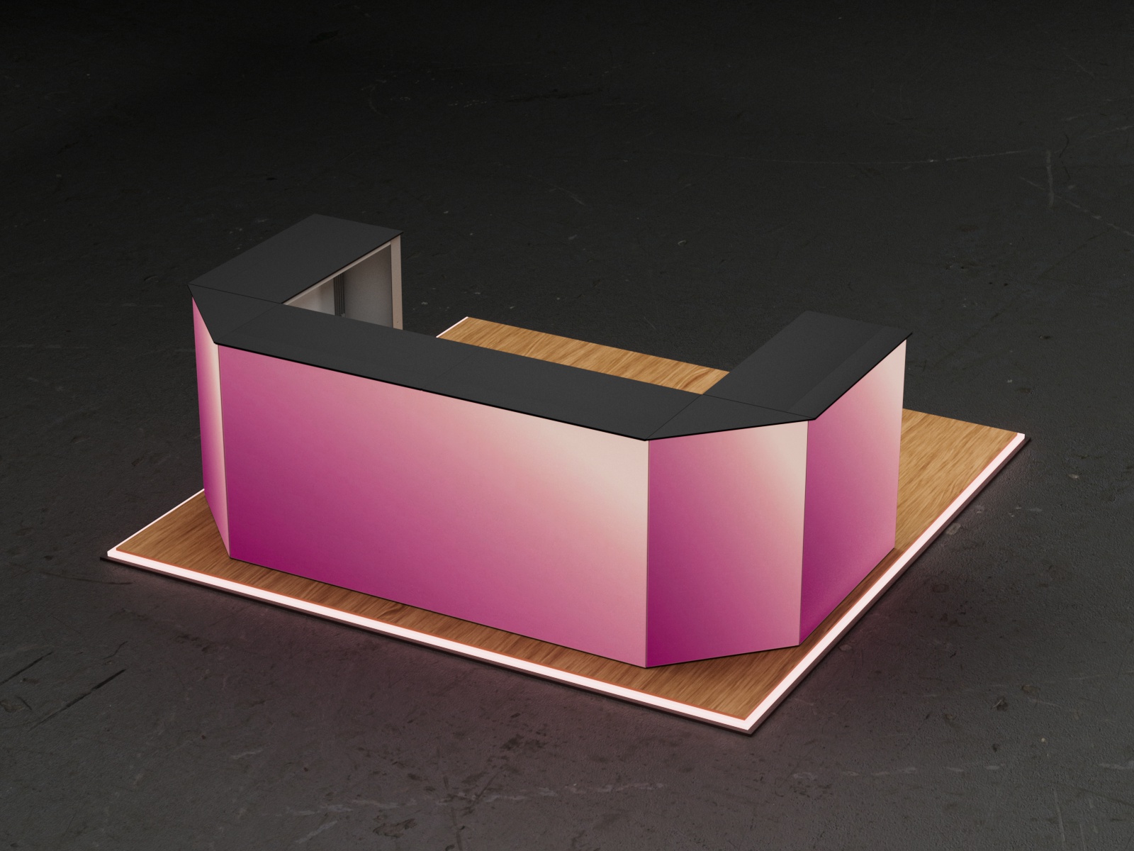 The COUNTER CARMEN Set is a premium C-shaped LED counter configuration. Ideal for open consultation areas, product displays, or reception spaces, it offers a 360° presentation surface with smooth corner transitions and a continuous illuminated front.