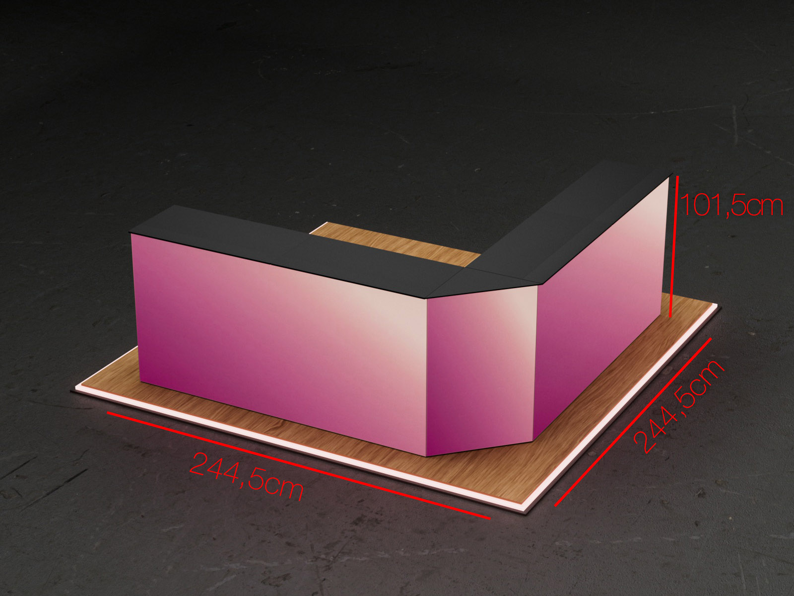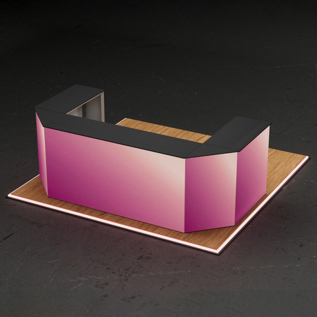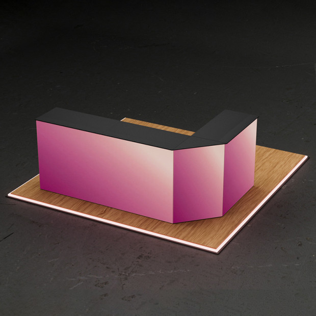 The COUNTER LOLA Set creates a spacious and impactful L-shaped counter configuration, perfect for corner booths, open reception areas, or multi-angle product presentations. It includes four COUNTER ONE units, a double Extension Set for one seamless front fabric, and a corner connector for a clean 90° transition.