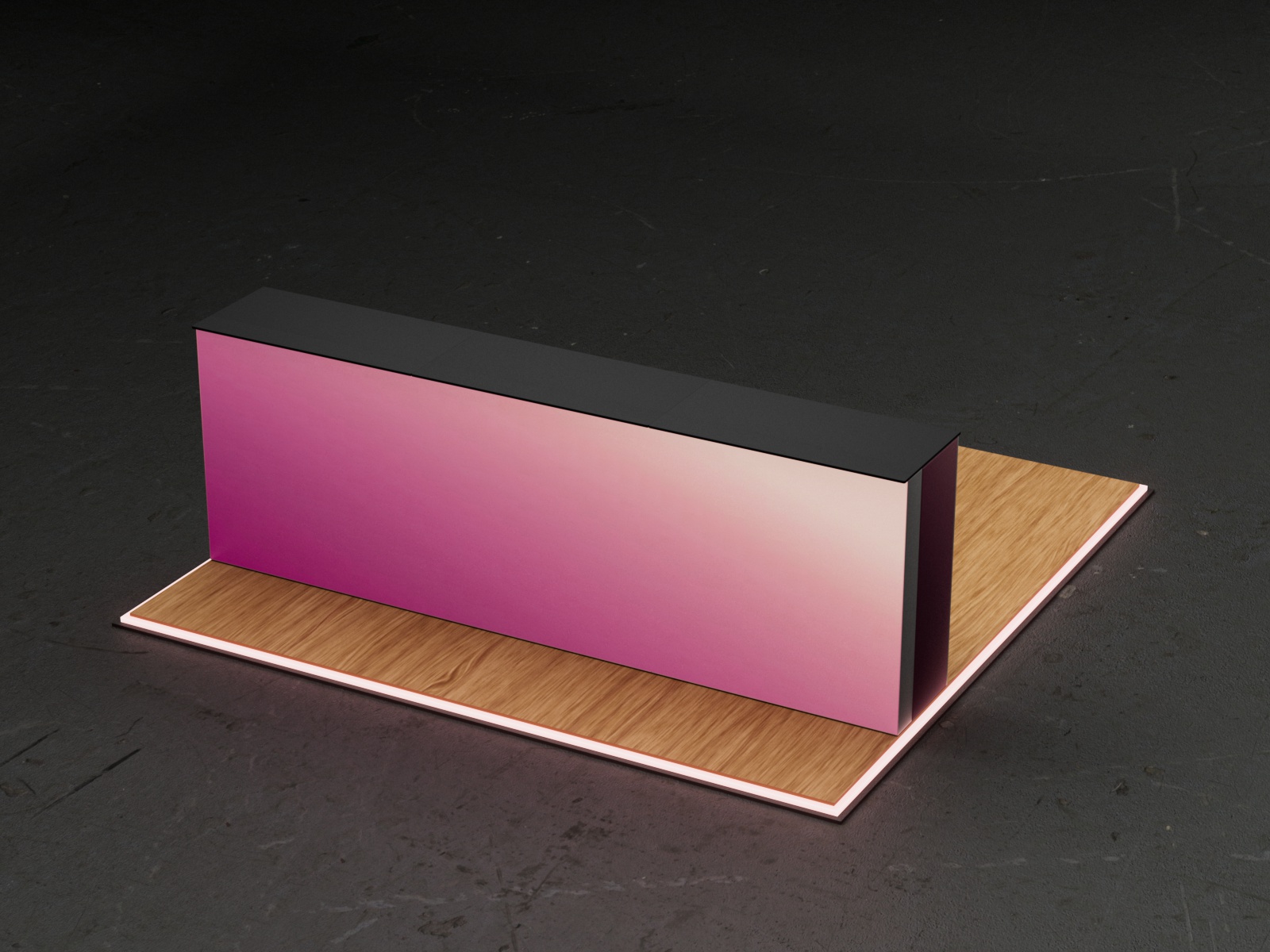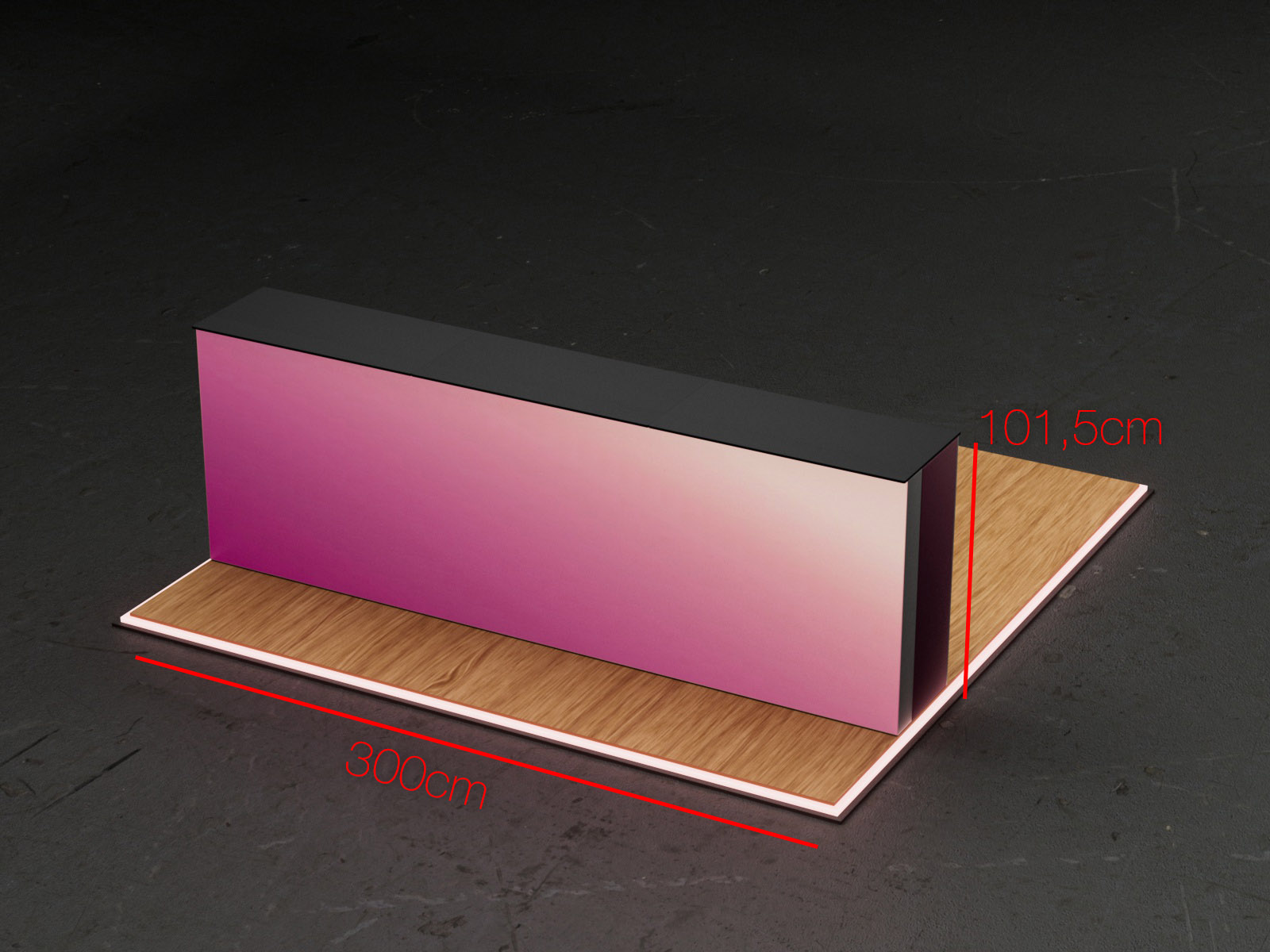 The COUNTER RICARDO Set includes three COUNTER ONE units connected with a double-width Extension Set. This creates an extra-wide illuminated counter surface with one seamless front graphic, delivering maximum brand presence with minimal setup effort.