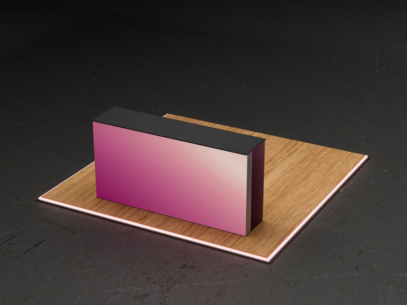 Thanks to the seamless connection, the two counters share one single front fabric, creating a uniform illuminated surface. The back side offers functional storage space and can be optionally fitted with a lockable door.